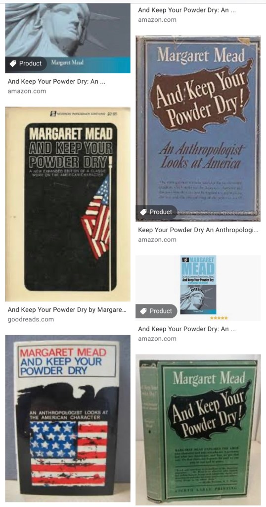 We will and must answer “who are we?” at the polls and in our homes, whether we like it or not, so this blog is my effort to lead a discussion about it, by reading a book about it with you. That book is And Keep Your Powder Dry by Margaret Mead.