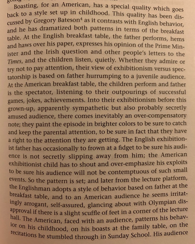 “The American child is taught to think about each situation as it comes up, rather than to relax into an implicit acceptance of a set of rules which all those whom he meets will play by.”