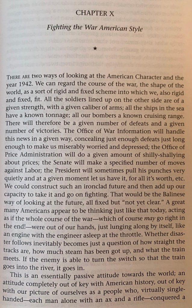 “A great many Americans appear to be thinking just like that today, acting as if the whole course of the war…were out of our hands, just lunging along by itself, like an engine with an engineer asleep at the throttle.”