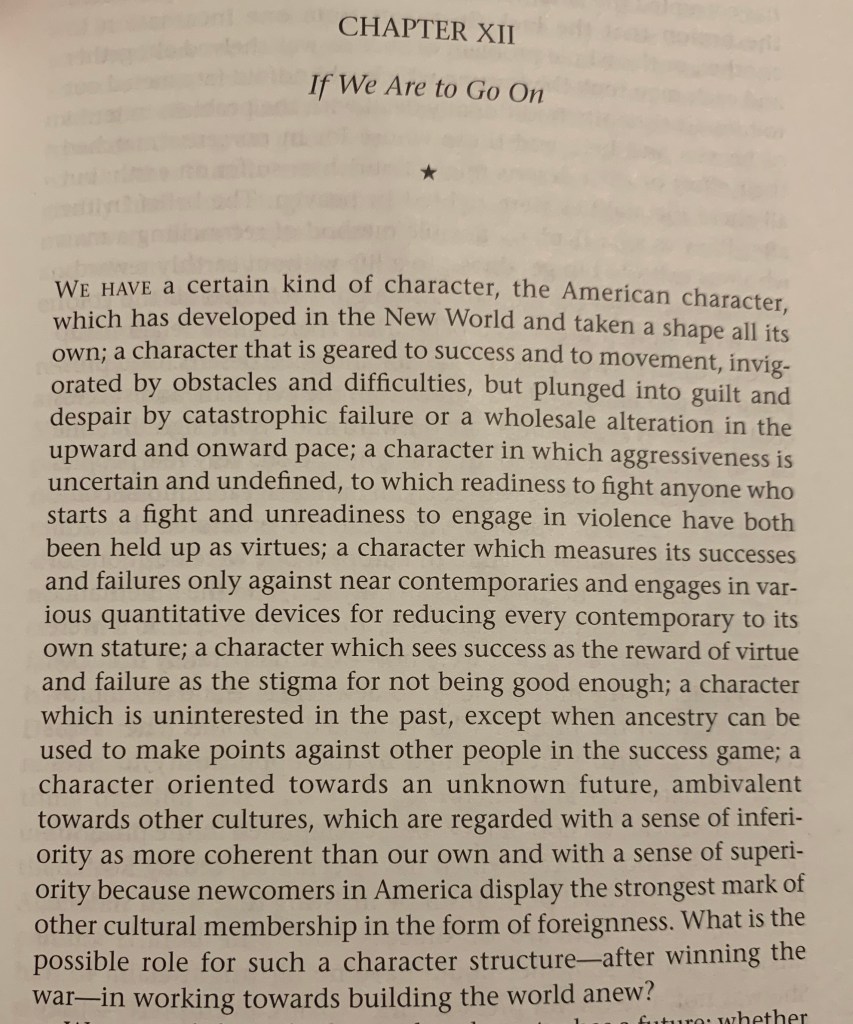 Mead ends the chapter by reminding us that if our parents or we do not measure up, there is some other American who can.