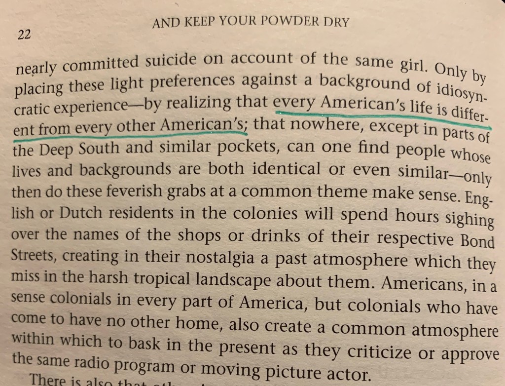 And Keep Your Powder Dry benefits from the care Margaret Mead takes in explaining her points. You understand her thinking as she forms her ideas, but more importantly, she is describing an America that you know, because you live in it. She describes people you know, because they are Americans. The America you know is not Mead’s America, but still, she knew yours very well.