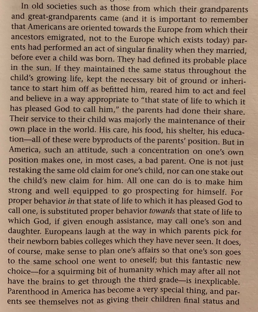 “But in America, such an attitude, such a concentration on one’s own position makes one, in most cases, a bad parent.”