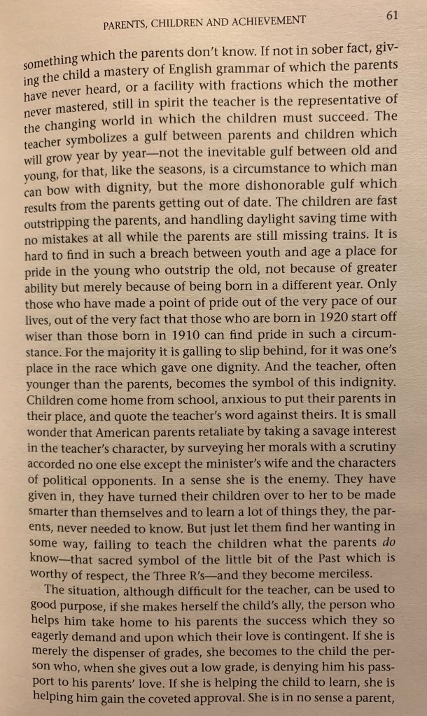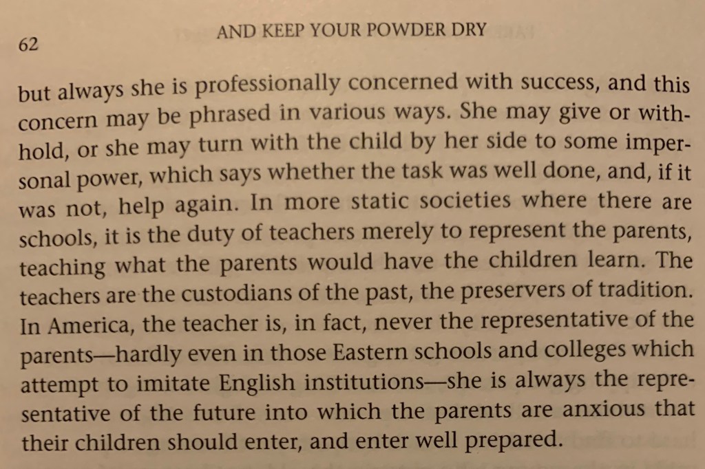 Chapter VI of Margaret Mead’s And Keep Your Powder Dry is titled “Parents, Children and Achievement.”